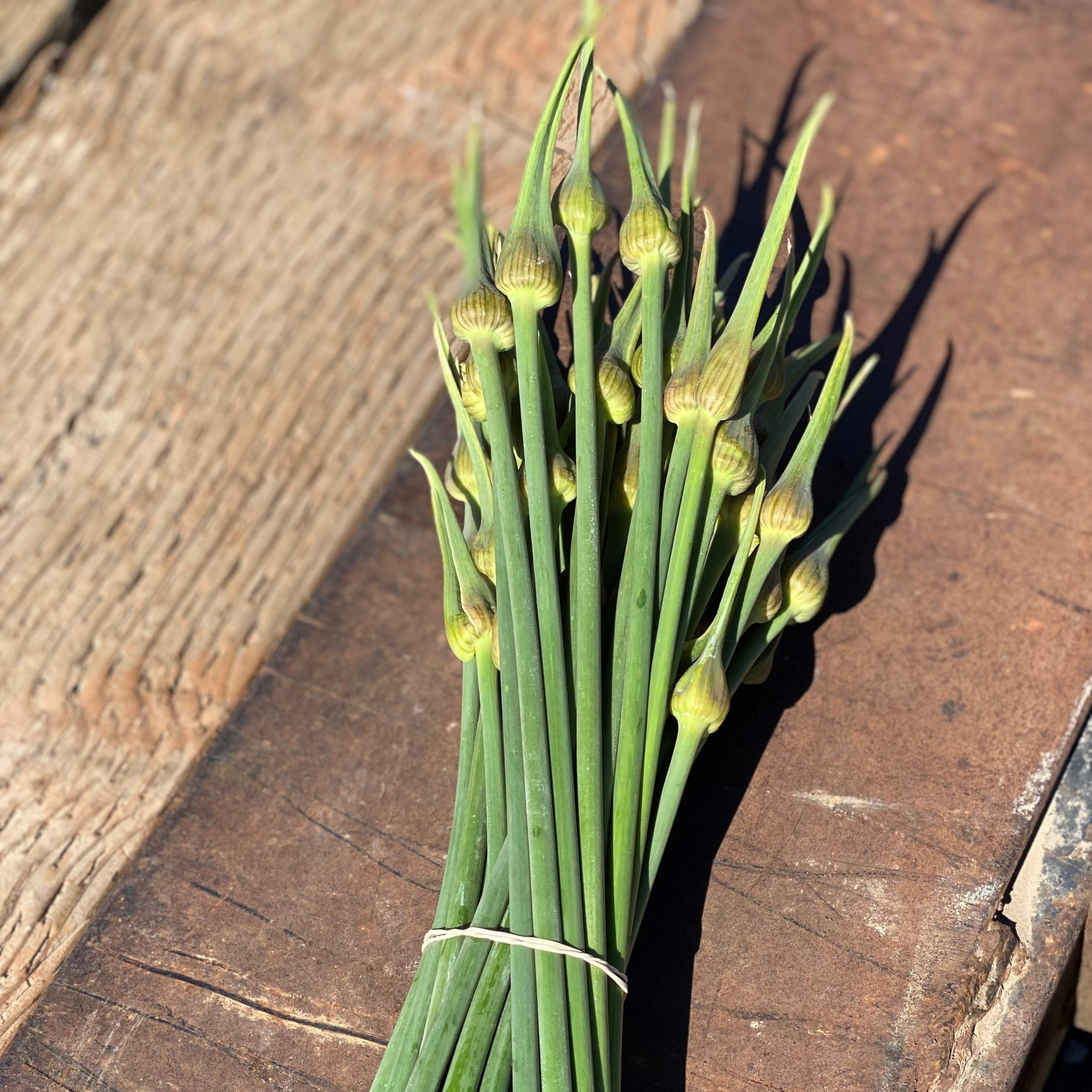 The bulb is large and white-skinned with purple stripes and numerous small cloves. This plant is vigorous, and better adapted to summer heat than Italian Late. Widely grown around Gilroy, California, the “garlic capital” of the world. Available Spring and Fall.